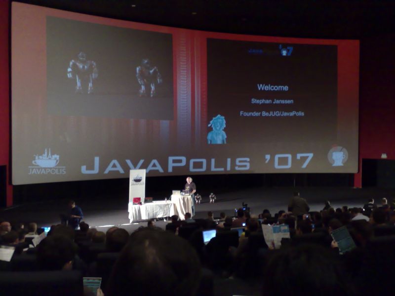 Neal Gafter (black hat) watching Josh Bloch’s presentation at JavaPolis 2007